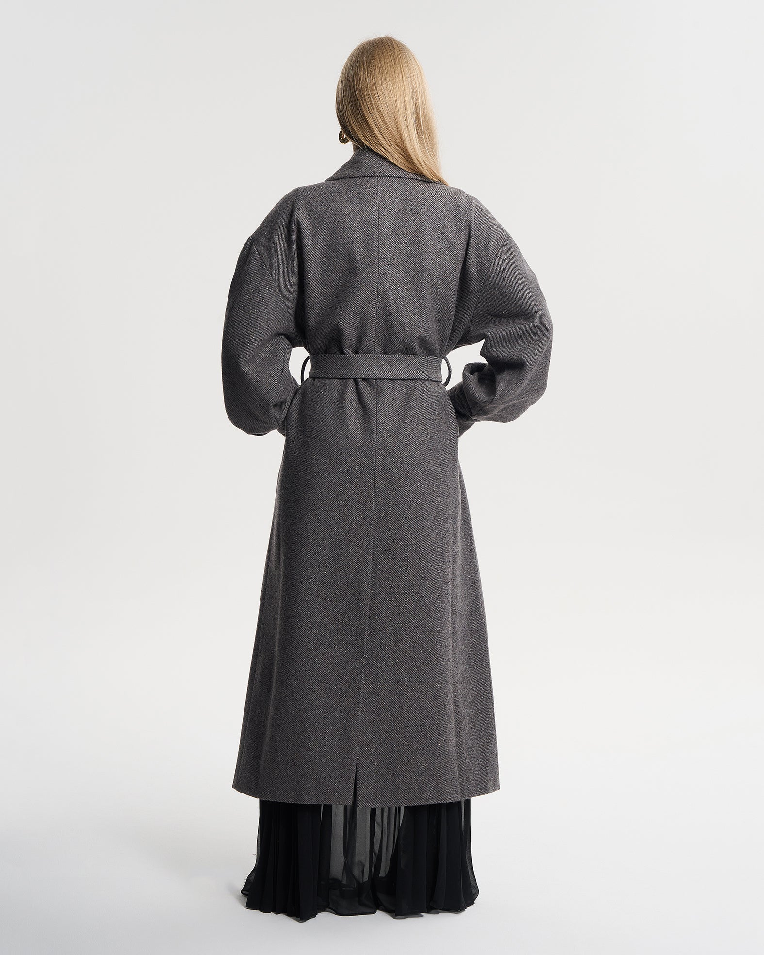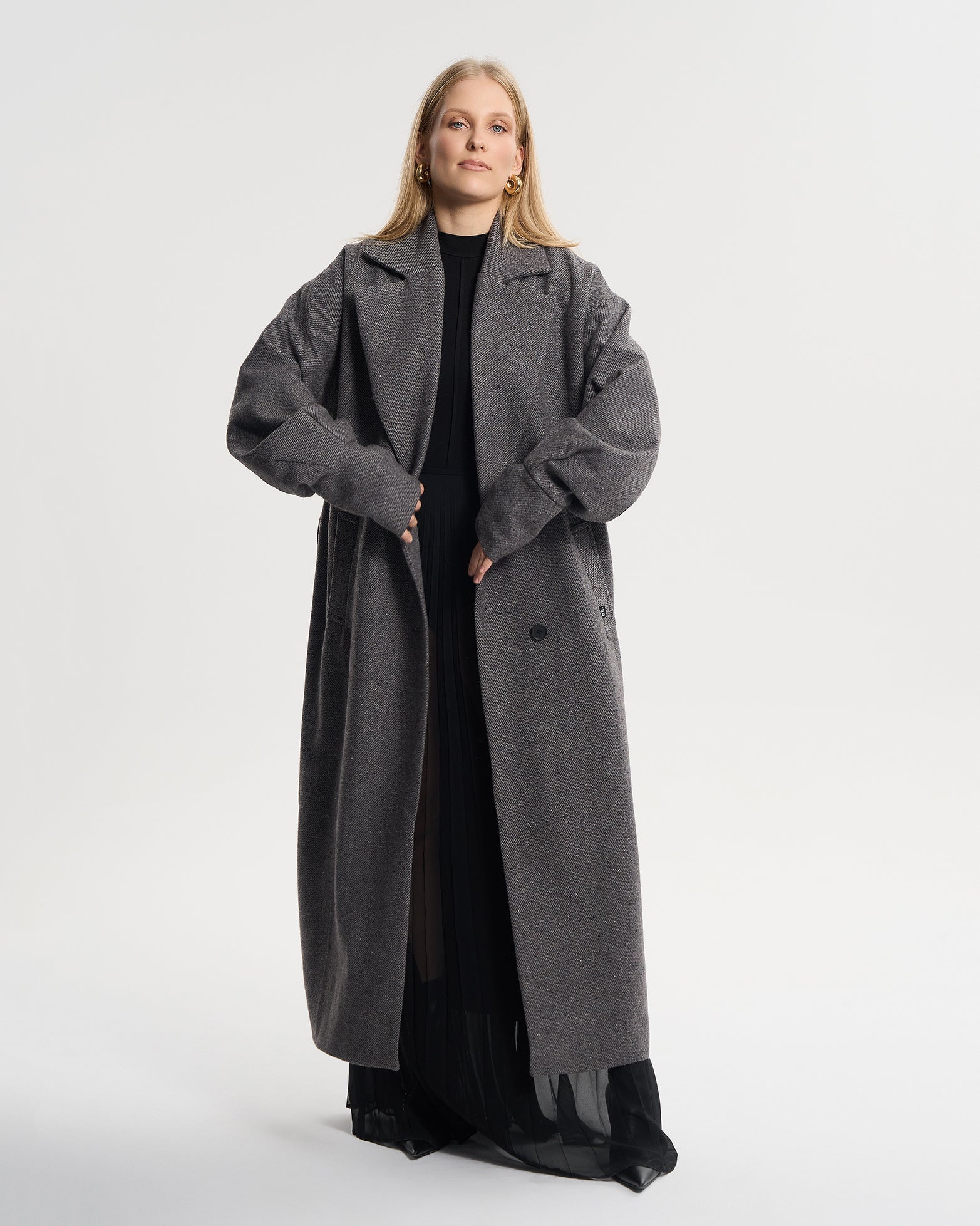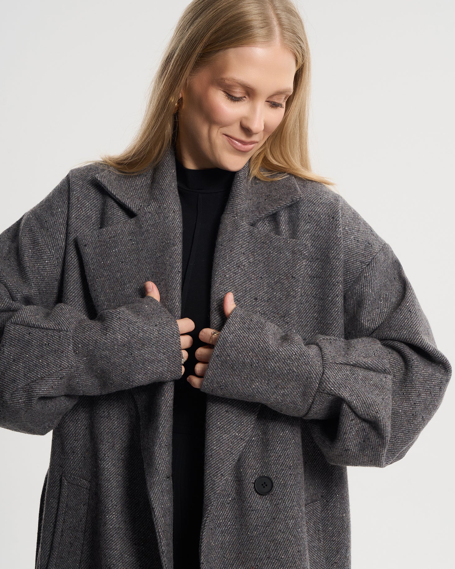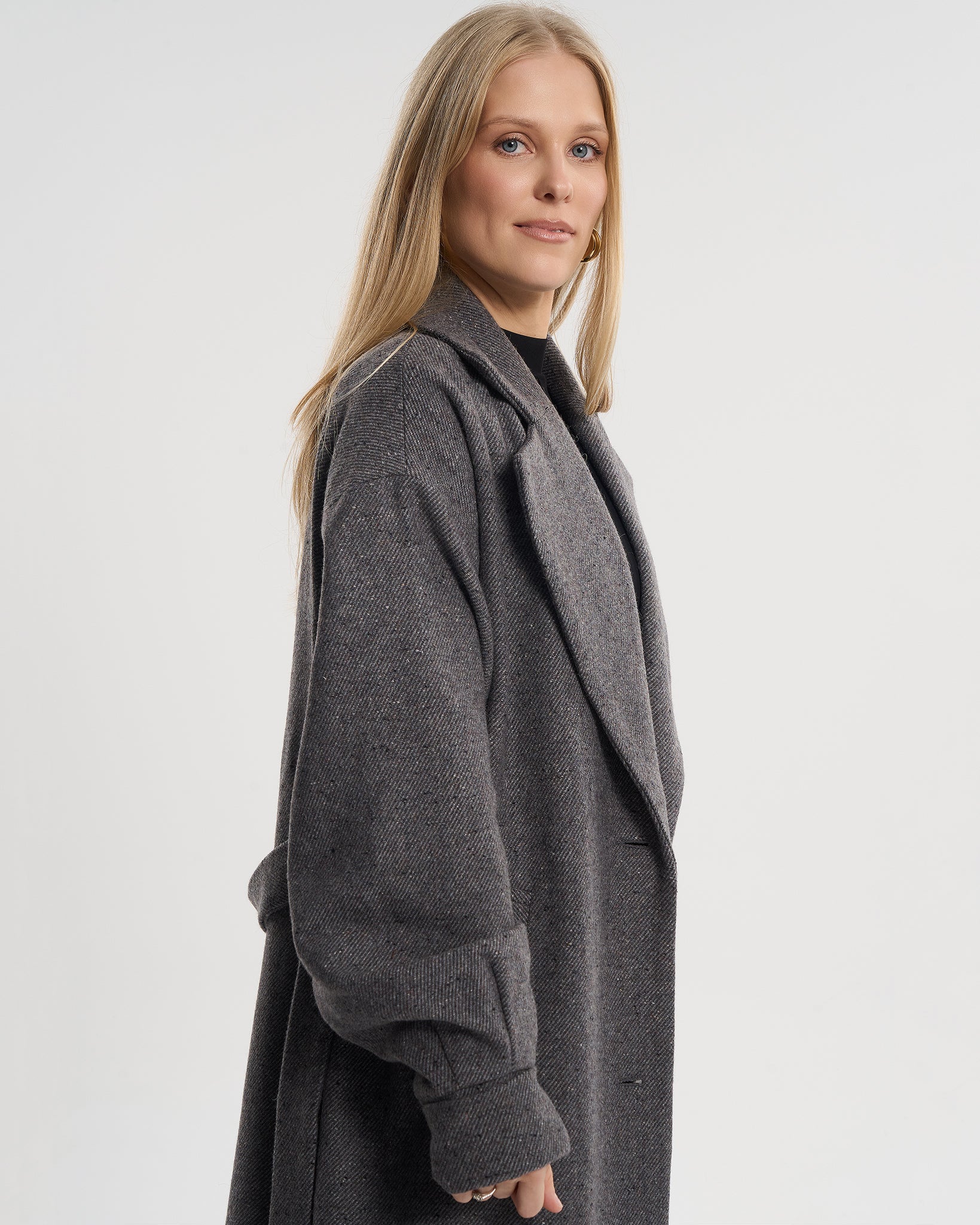 Obszerny płaszcz, niemalże do kostek (zależnie od wzrostu oczywiście, rozpiska poniżej), oversize. Włoska tkanina o wysokiej zawartości wełny z certyfikatem Oeko-Tex w pięknym wzorze. Zrealizuj swoje wymarzone stylizacje rodem z Pinteresta, best street style.